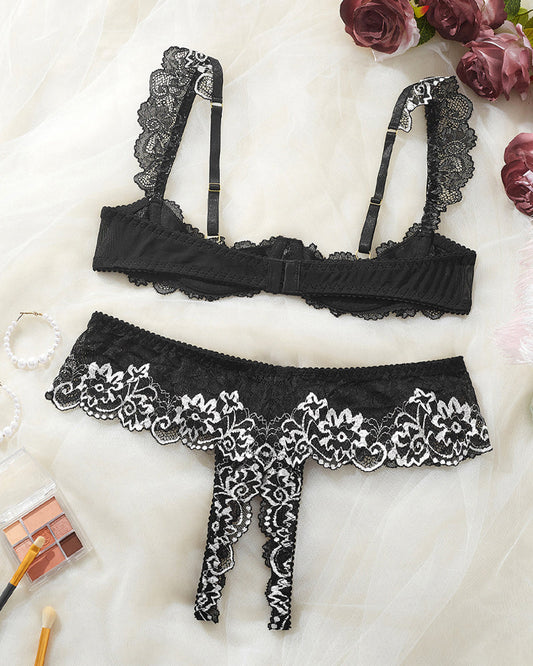Sexy Open-Crotch Exposed Breasts Lace Lingerie Set