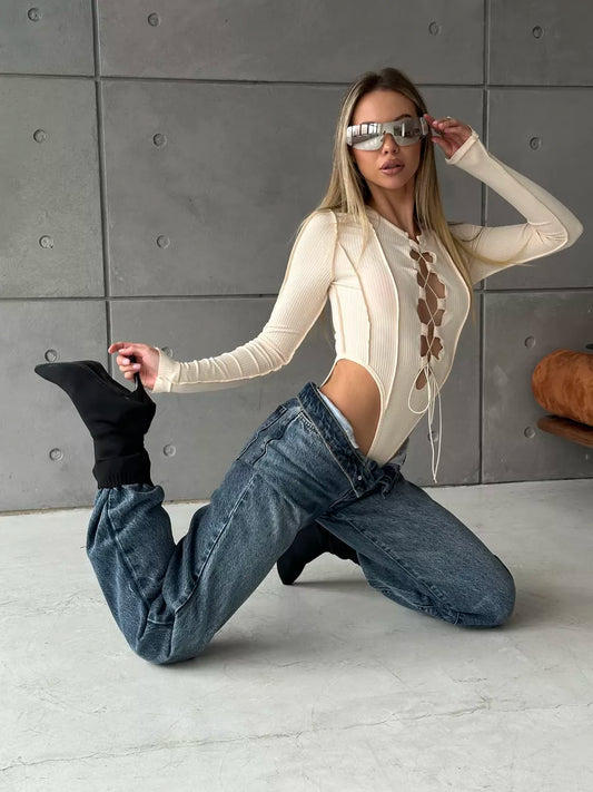 FancyStar™ Bodysuit with Open Back and Long Sleeves HEMSMTH025