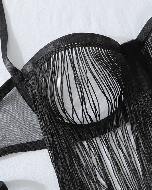 Sexy Lace See-through Tassel Hollow Underwear Set