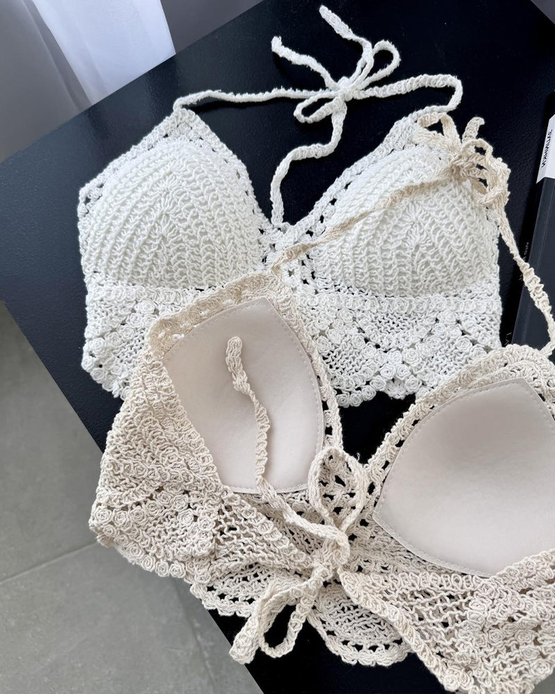 Beach Vacation Knitted Halter Neck Backless Vest