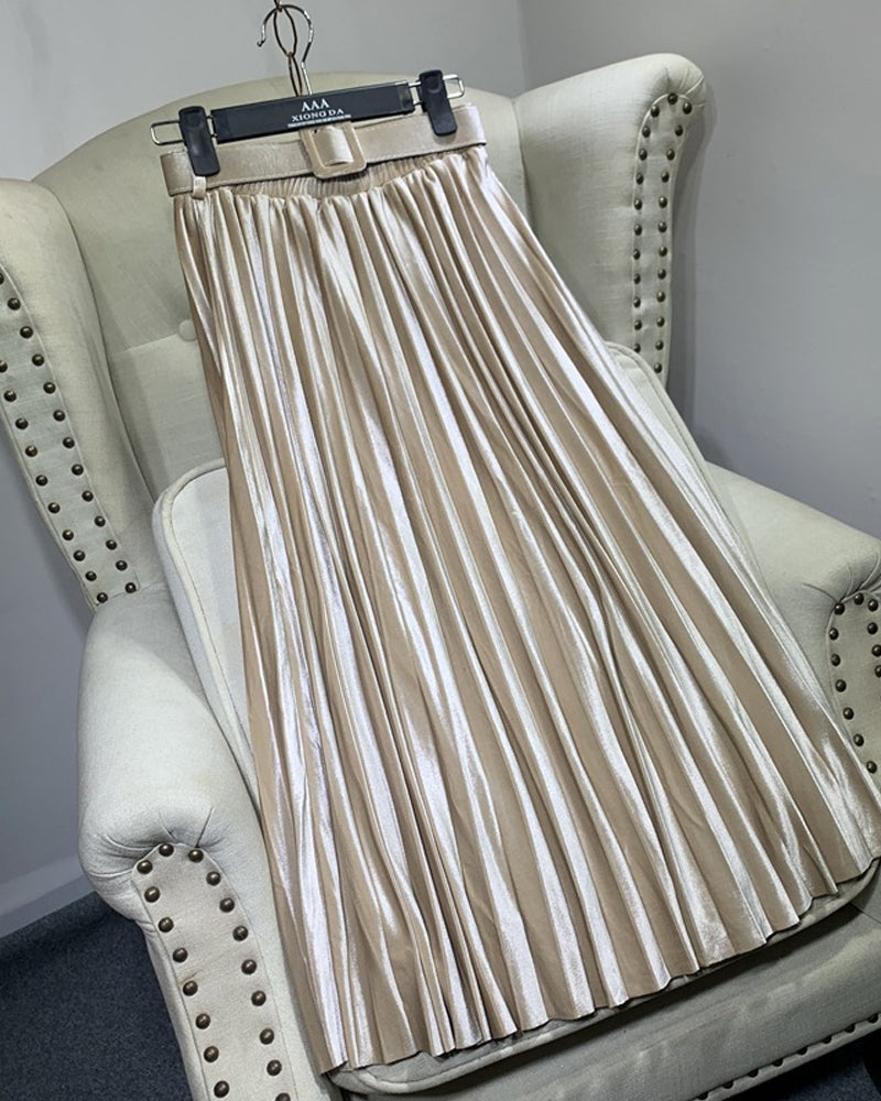 Casual Velvet Pearly Sheen High-waist A-line Pleated Skirt