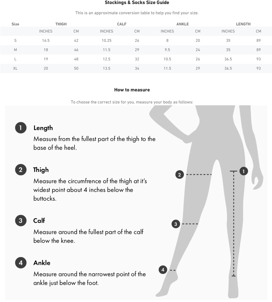 Stockings & Socks Size Guide