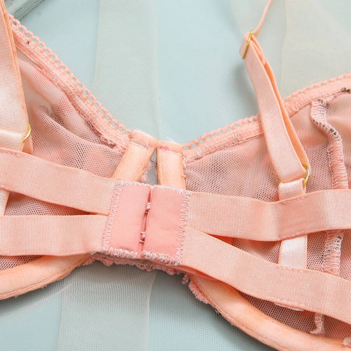 The back closure adds a touch of mystery to this sensual outfit, inviting you to revel in the anticipation of desire. Exquisite embroidery details weave a tapestry of sophistication, transforming each piece into a work of art that transcends the boundaries between fantasy and reality.