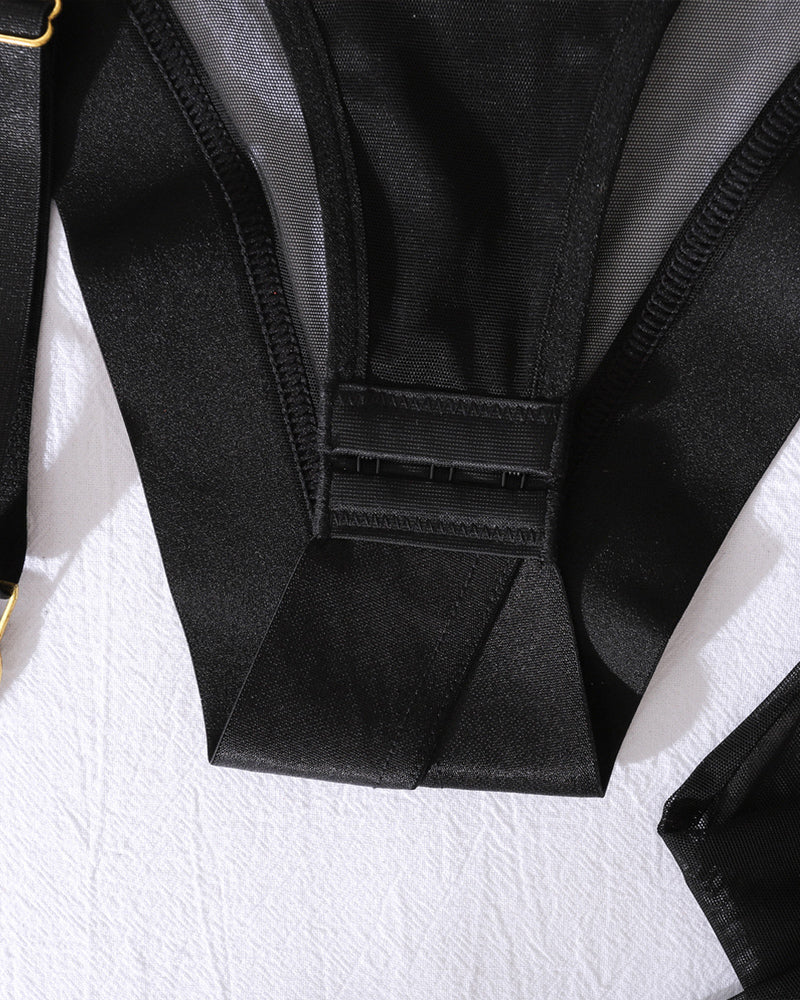 Mesh See-Through Bodysuit With Leg Stockings Sexy Lingerie Set