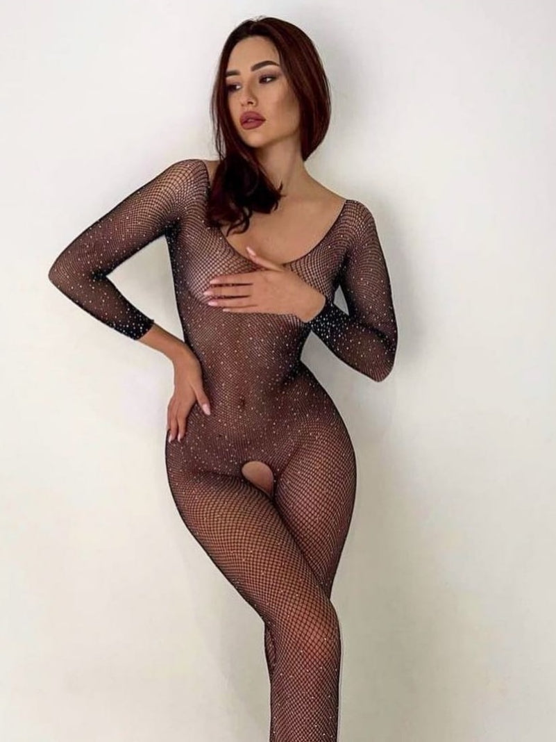 Add some sparkle to your naughty nights with our Rhinestone Fishnet Crotchless  Bodystockings! These sexy and playful bodystockings will definitely bring some fun to your love life. Don't be afraid to unleash your wild side with this daring and flirty lingerie piece.