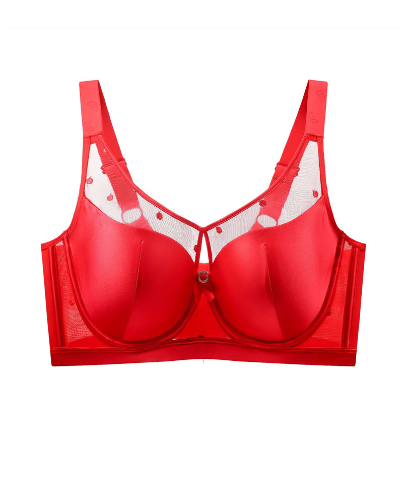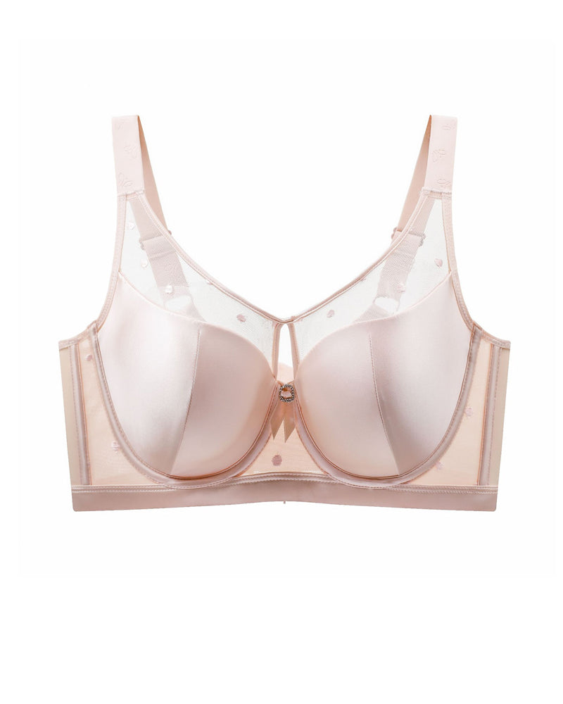 Satin Mesh See-through Patchwork Underwire Plus Size Push-up Bra