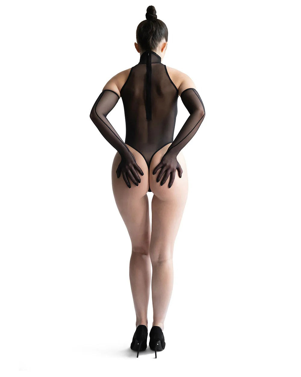 • Classic High-Neck Cut: A timeless silhouette that elongates the body and adds a touch of elegance to its sheer, provocative form.