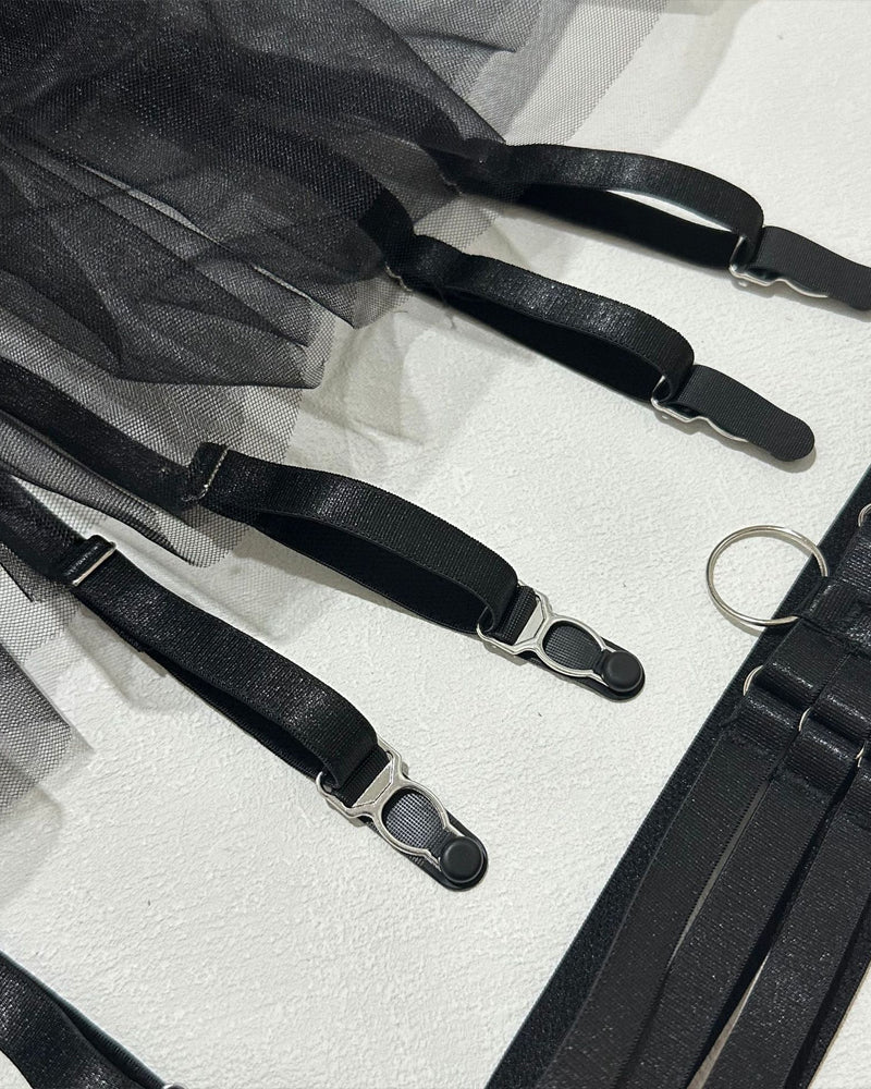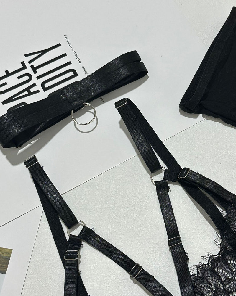 Make a Statement: Step into the spotlight with this daring and feminine six-piece set that blends sophistication with sultry charm. Whether you're surprising a loved one or treating yourself, this ensemble is sure to leave a lasting impression.