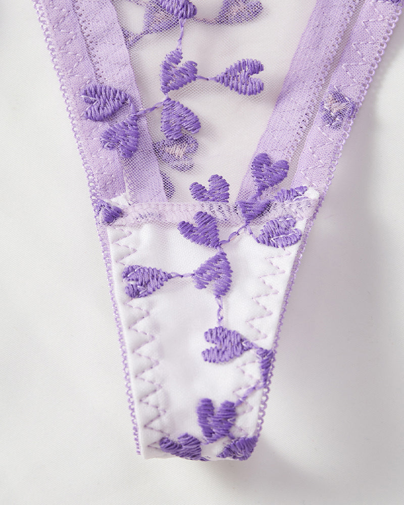 Sexy Sheer Mesh Heart-shaped Embroidery Underwire Lingerie Set