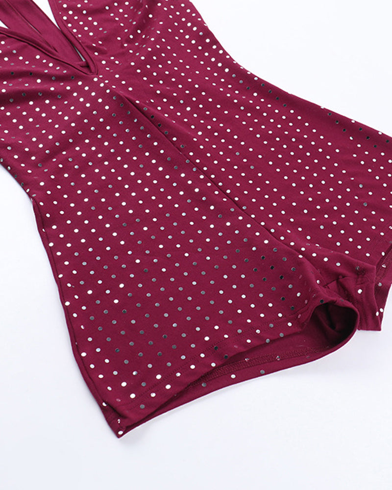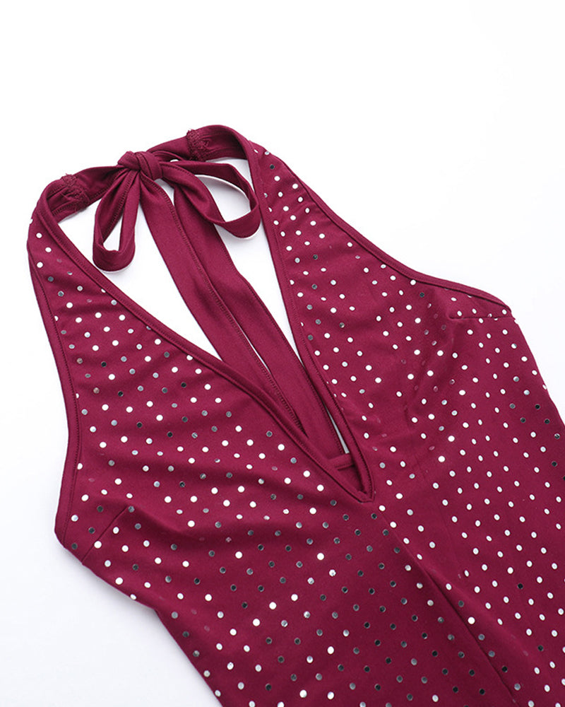 Sexy Slim Fit Deep V Jumpsuit with Rhinestones