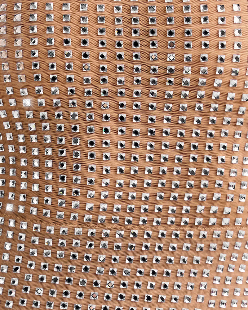 Square Neck Rhinestone Sexy Slim Stretch Dress
