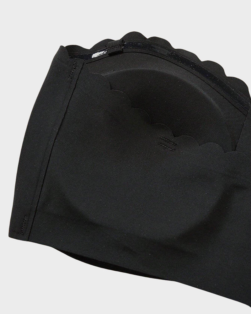 Introducing the scalloped neckline strapless bra, a perfect blend of elegance and comfort designed for the modern woman. With its unique scalloped edge, this bra adds a touch of sophistication to your lingerie collection while ensuring a secure fit. Ideal for wearing under a variety of outfits, from off-the-shoulder tops to elegant dresses, this bra provides a seamless silhouette that enhances your natural shape without compromising on support.