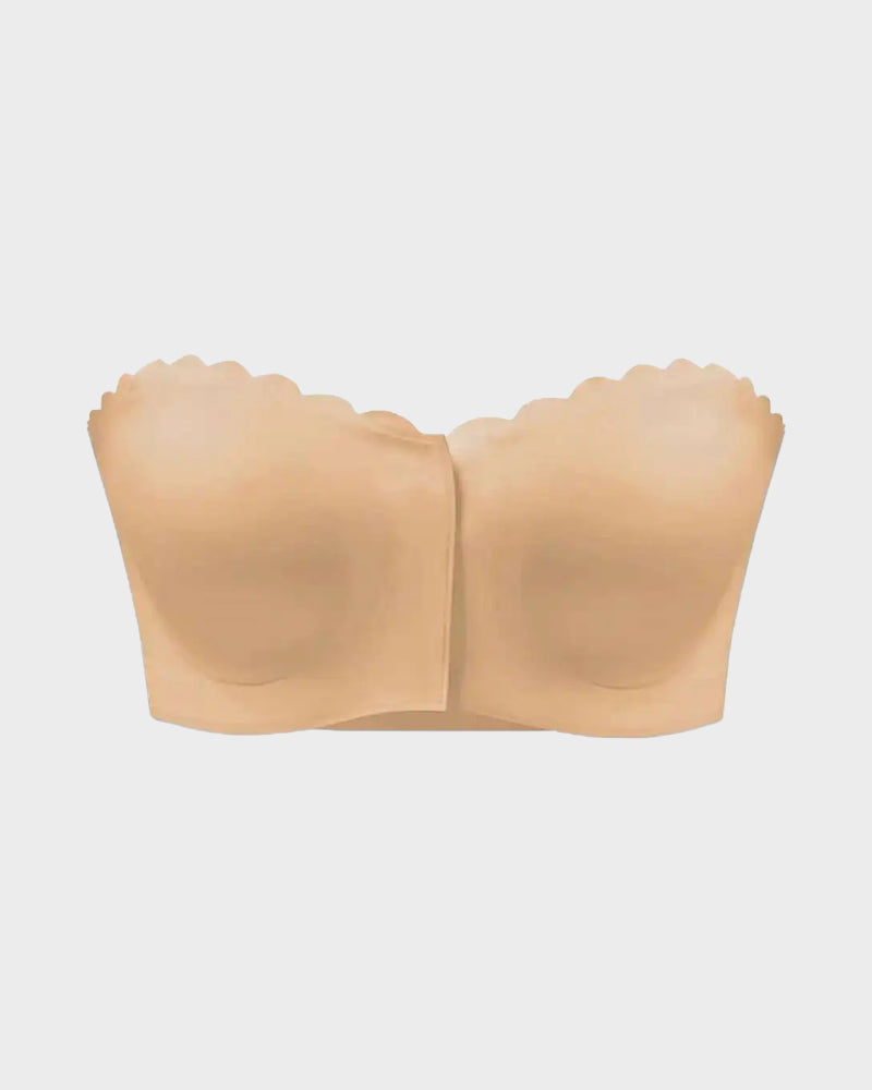 In addition to its stylish appearance, the scalloped neckline adds a subtle flair that sets it apart from traditional strapless bras. This flattering detail makes it easy to showcase your style while feeling confident in your outfit. The seamless construction ensures that there are no visible lines, allowing you to wear your favorite tops and dresses with ease.