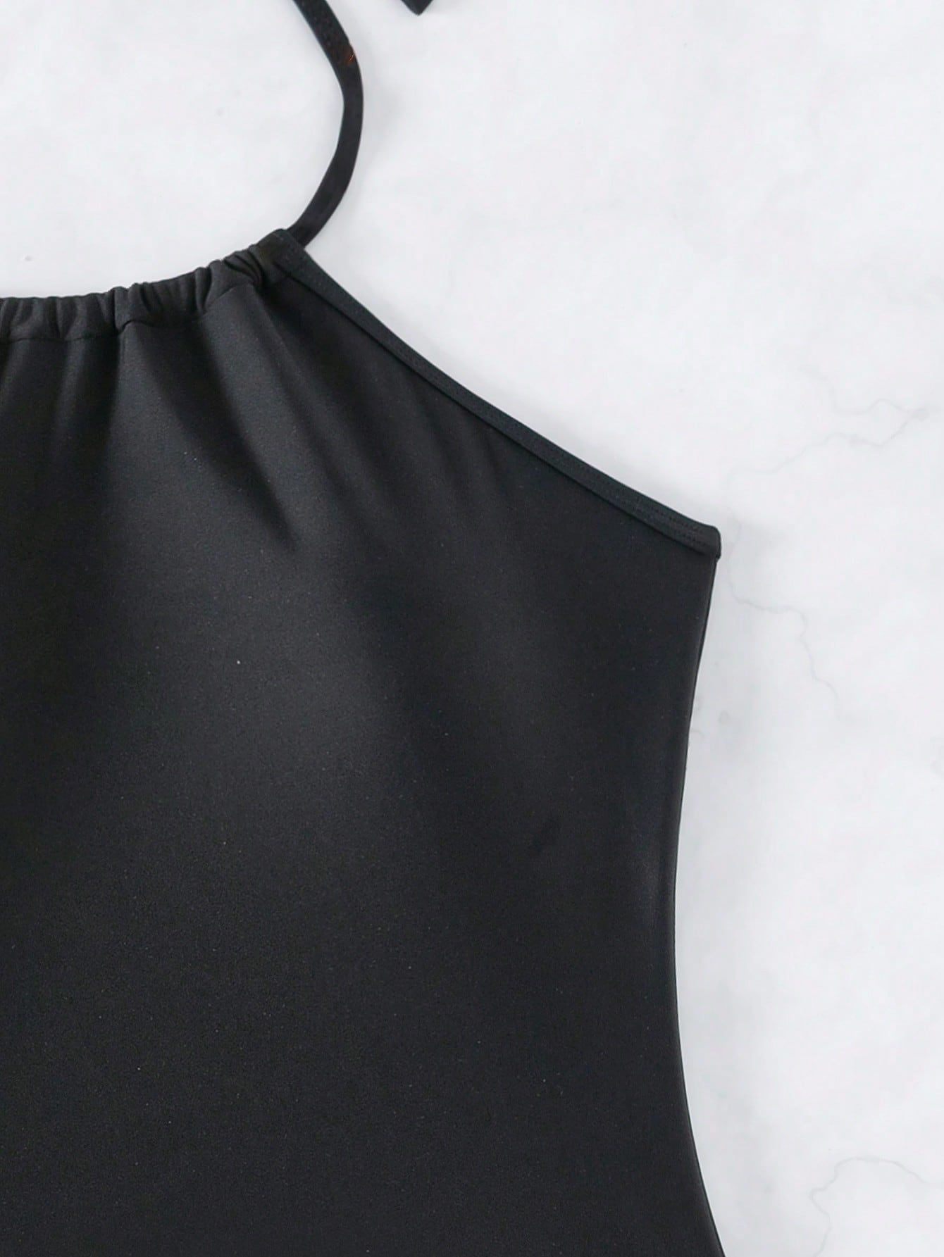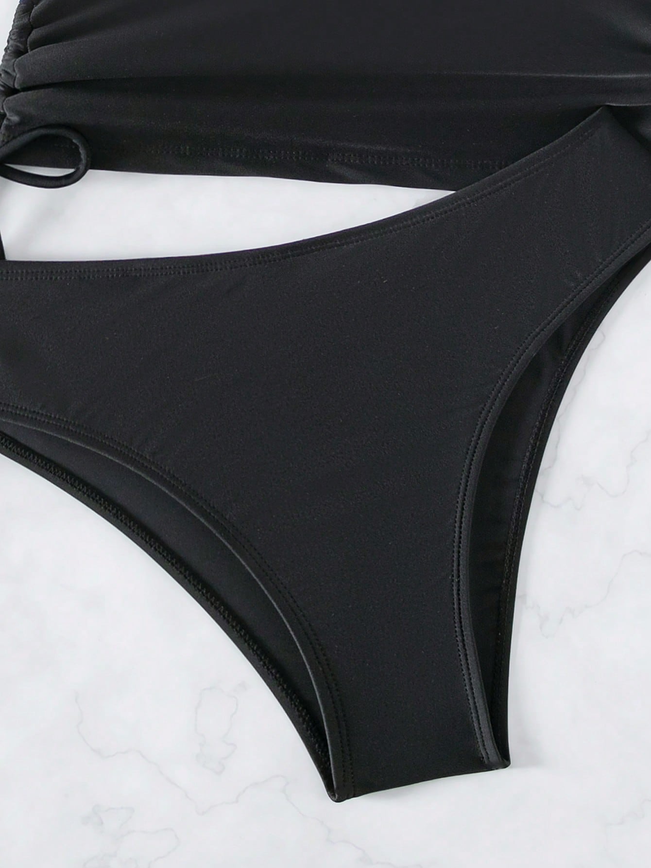 Tropical Print Drawstring Side Halter Bikini Swimsuit