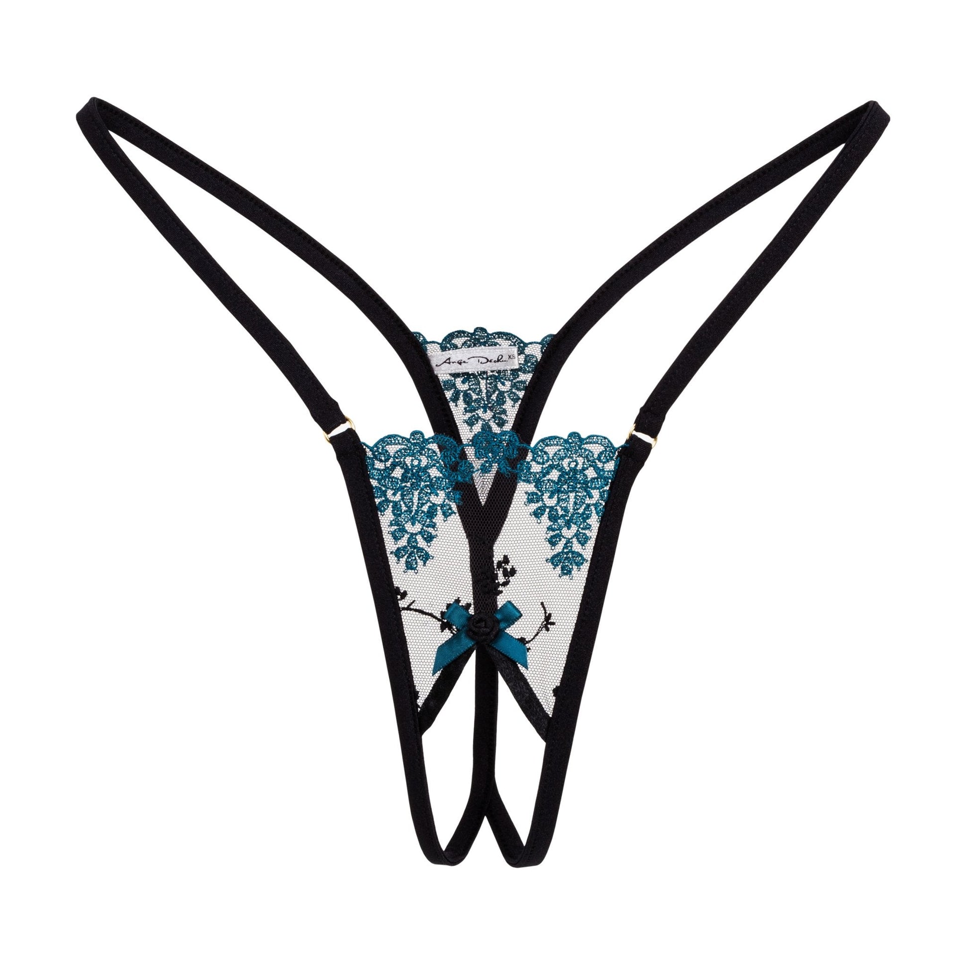 Crotchless black and turquoise lace see through pantie thong G-string, luxury hand made gift for her  by Ange Dechu