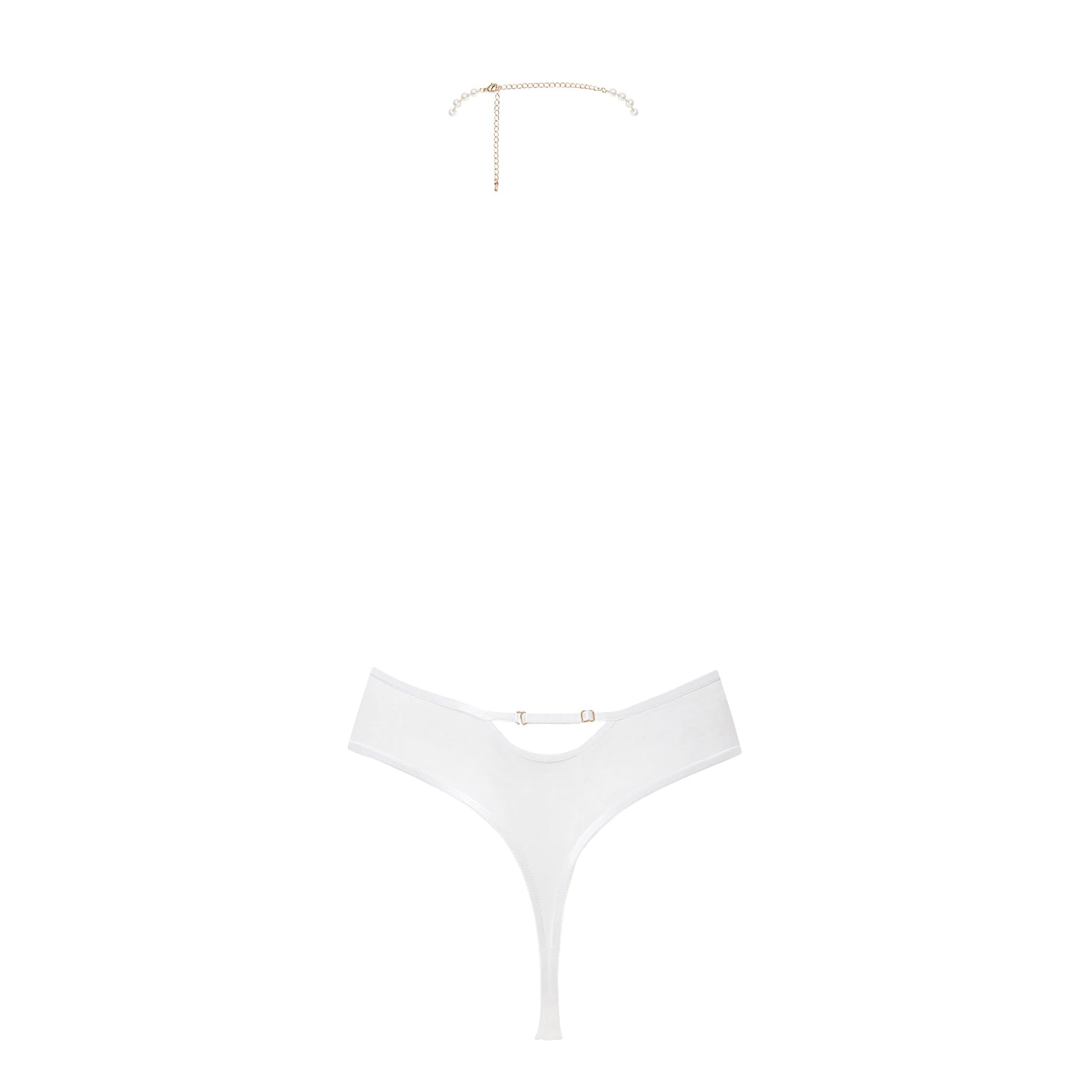 Cascading pearlescent beads and gold-tone chain detailing frame the body beautifully on this Pearl bodysuit. The plunging neckline and directional silhouette add chic sensuality to your wardrobe. This bodysuit features a super soft high-rise thong with a hypoallergenic bamboo gusset for ultimate comfort.
