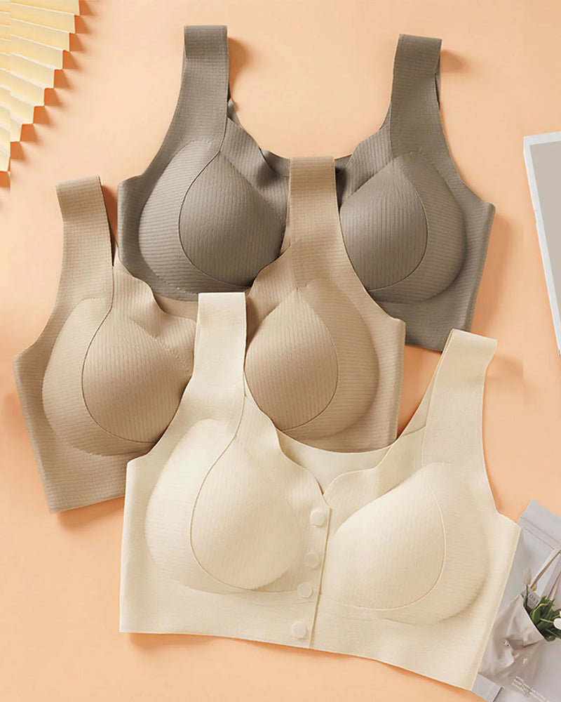 Women's V Neck Front Closure Seamless Wire-free Comfortable Breathable Vest Bra